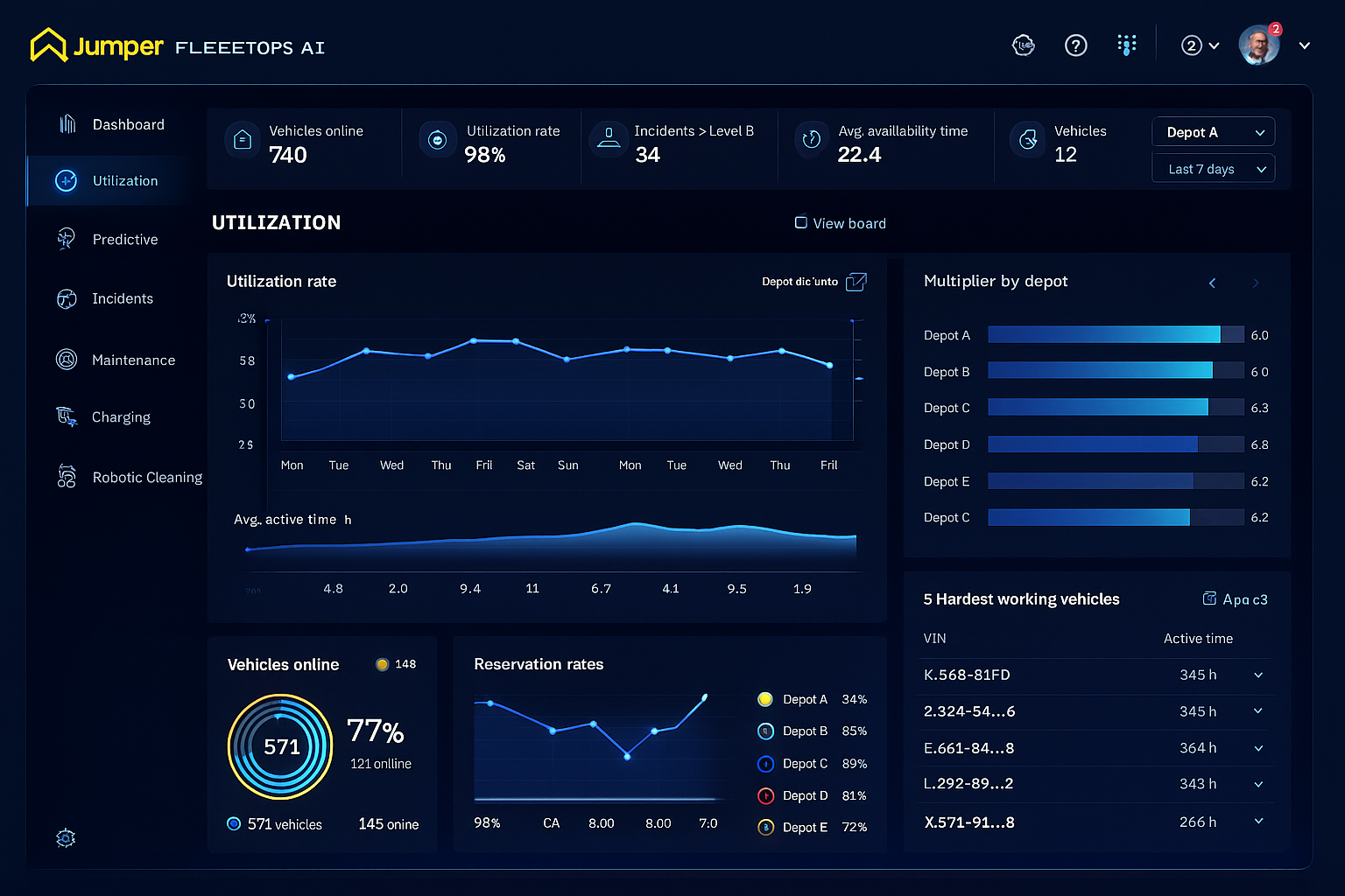 Jumper Mobility builds and operates automated depots — end-to-end infrastructure hubs that provide comprehensive autonomous fleet operations and predictive intelligence, while providing fleet financing to scale autonomy efficiently.