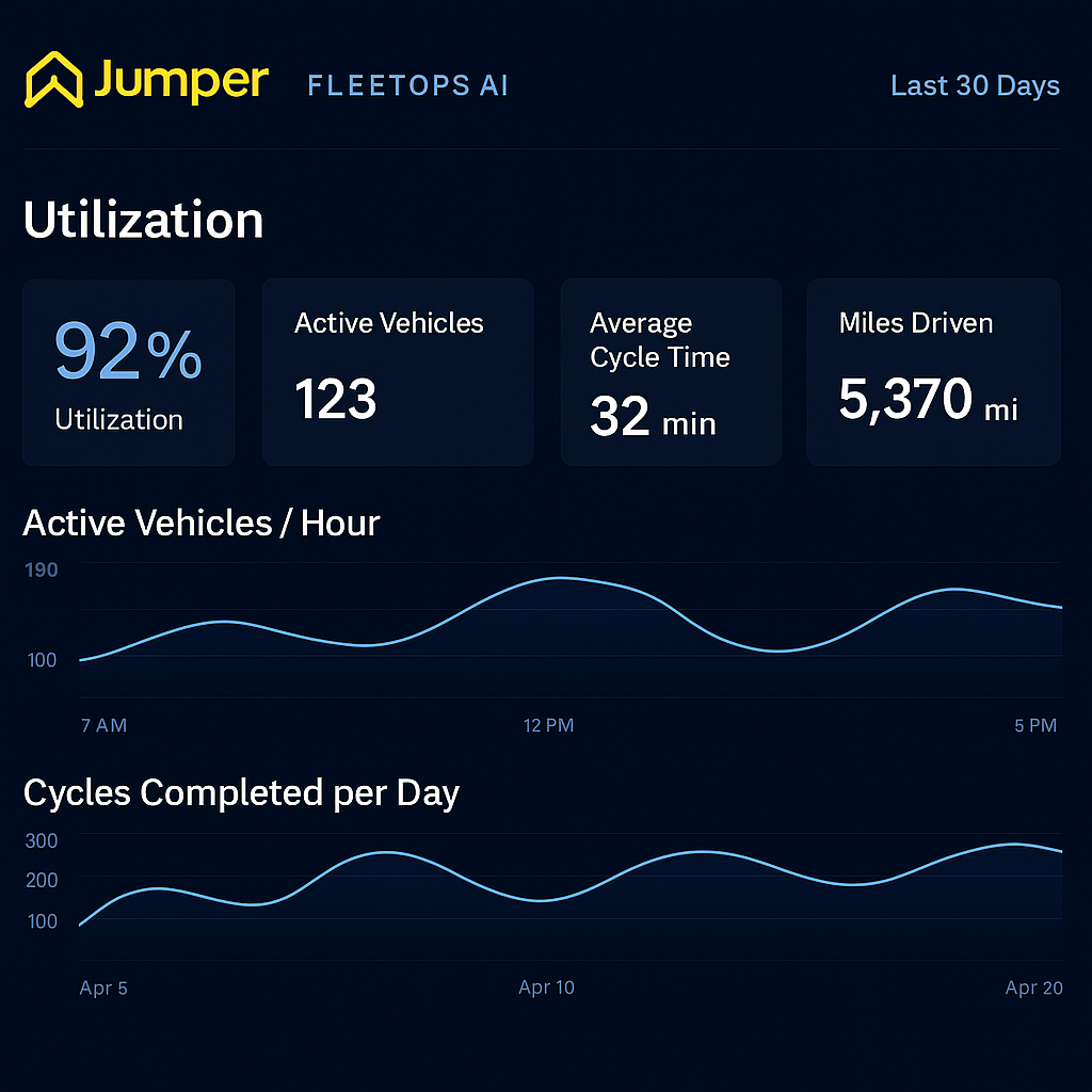Through our AI-driven fleet management software (FleetOps AI), Jumper maximizes AV efficiency, safety, and uptime — transforming how 24/7 self-driving fleets are managed, serviced, and financed.